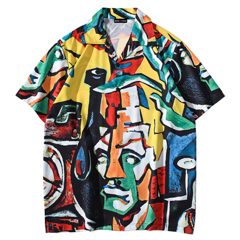 プリント柄シャツ スタンダードスタイルジャケット カジュアル レトロ ステッチ MAKE_ITRAIN85905499115