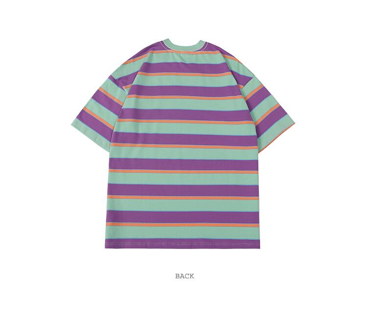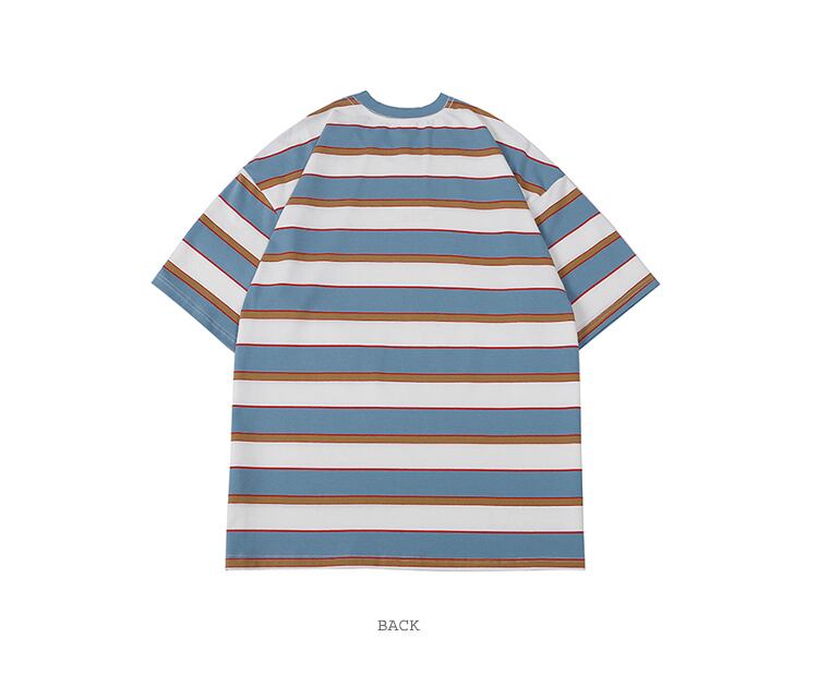 自然派マルチカラーストライプラウンドネックルーズTシャツ レッドトップス Oネック MAKE_ITRAIN49710560455