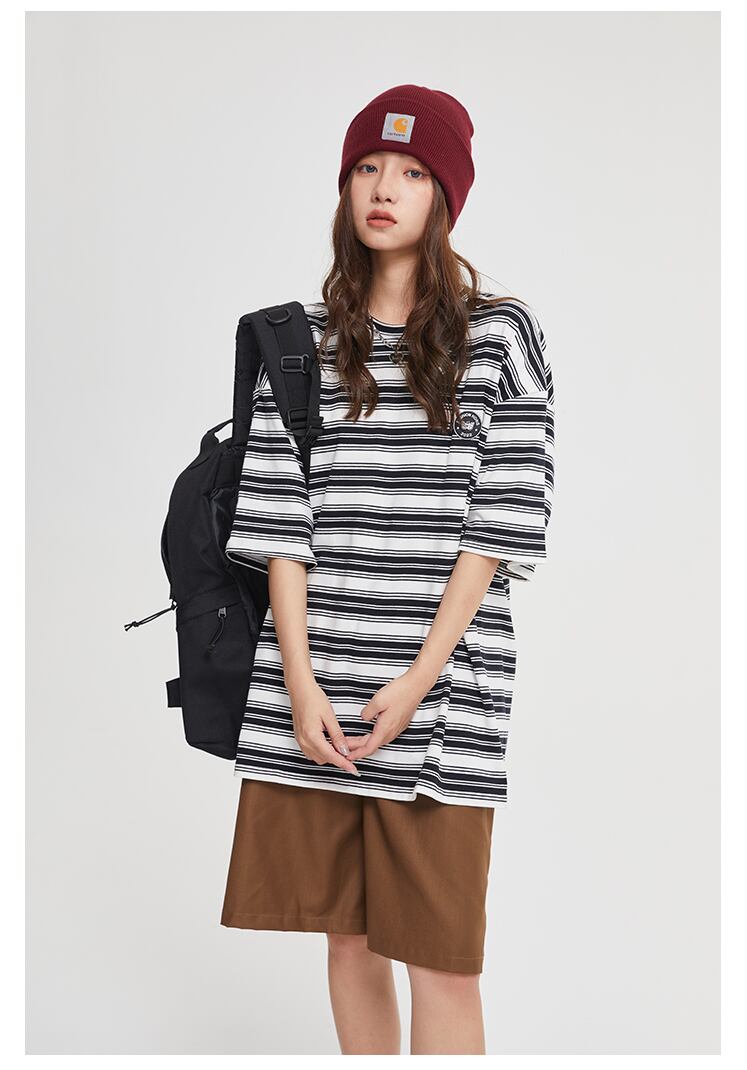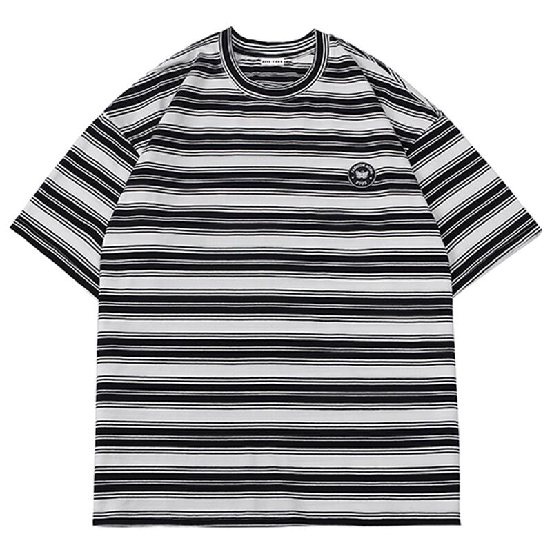 レディースTシャツ シャツ ブラックトップス ラウンドネック Oネック ストライプ MAKE_ITRAIN7666460721