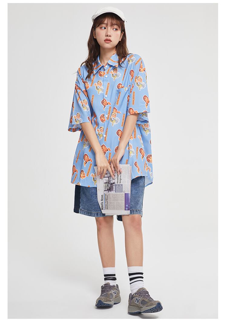 スタンダードカーキFlowerデザイン シャツ レディーススタイルヴィンテージルーズ レトロ フラワーデザイン ビンテージ MAKE_ITRAIN92498443750