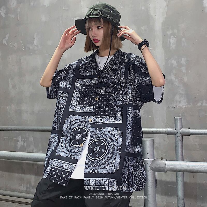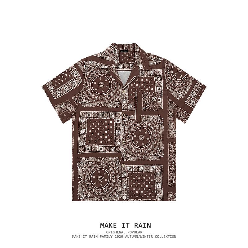 スタンダードFlowerデザイン シャツ ルーズスタイルカジュアルジャケット レトロ フラワーデザイン MAKE_ITRAIN12310929391
