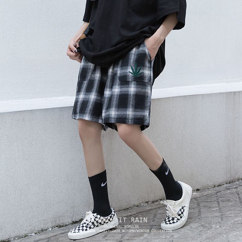 スタンダード格子柄刺繍ショーツ サマールーズパンツ レディース レトロ ストリート 夏物 ブルマー MAKE_ITRAIN18841151854