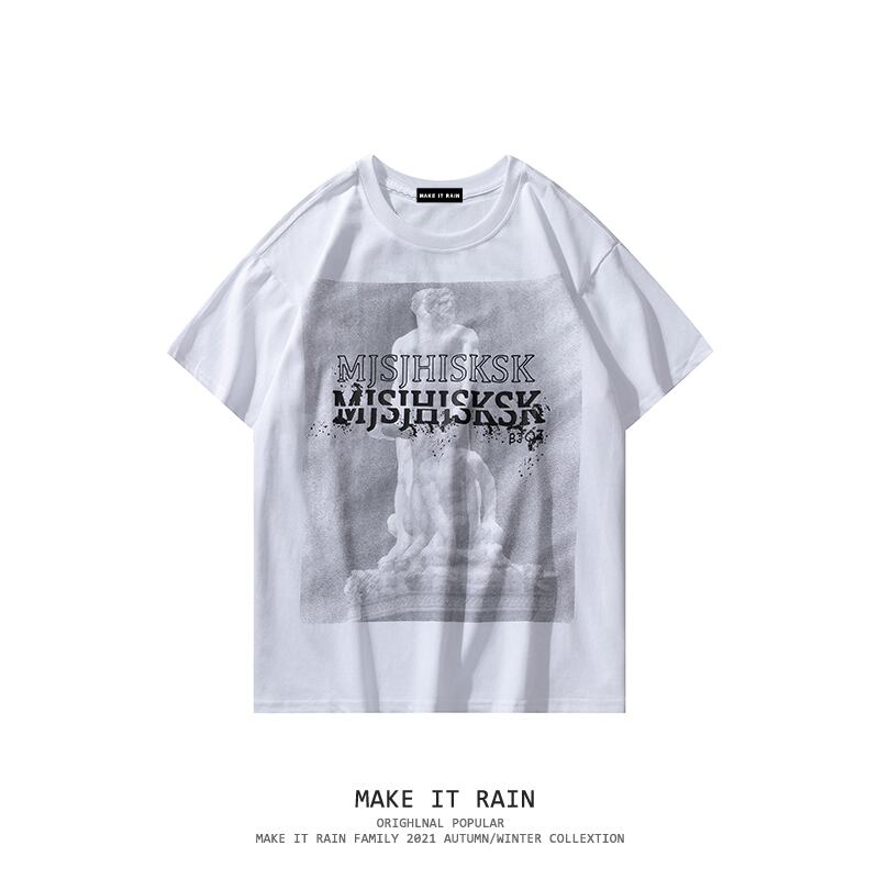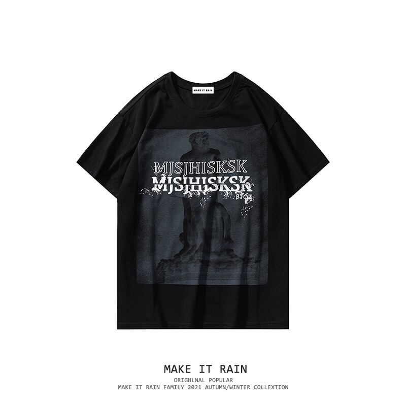 サマープリントシャツ スタンダードダークTシャツ レトロ 夏物 MAKE_ITRAIN75964928276