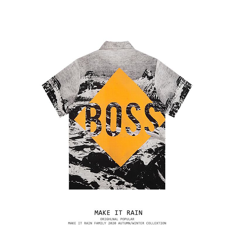 スタンダードプリント柄ルーズシャツ レトロ ストリート MAKE_ITRAIN79937562834