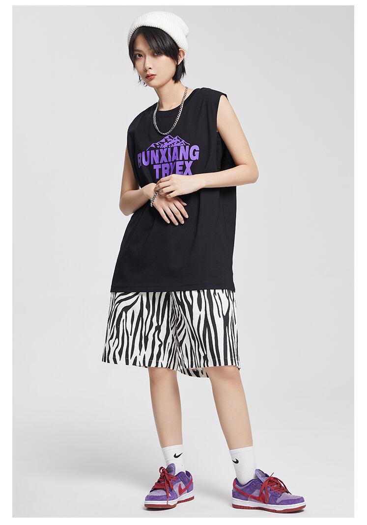サマープリント柄ジャケット ノースリーブシャツ レディースルーズ 夏物 MAKE_ITRAIN89628760317