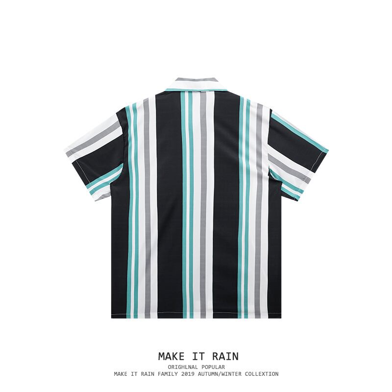 サマーストライプシャツ カジュアルルーズスタンダード半袖スリーブ ショート レトロ ハーフスリーブ 夏物 MAKE_ITRAIN5941993845