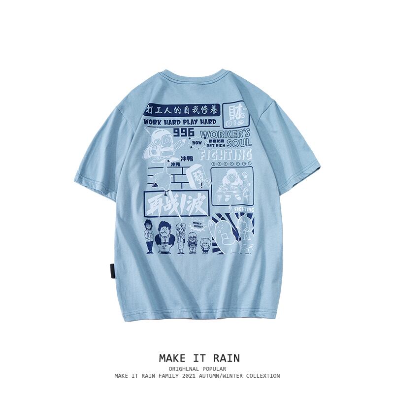 スタイルプリントスリーブトップス ルーズTシャツ MAKE_ITRAIN66943554611