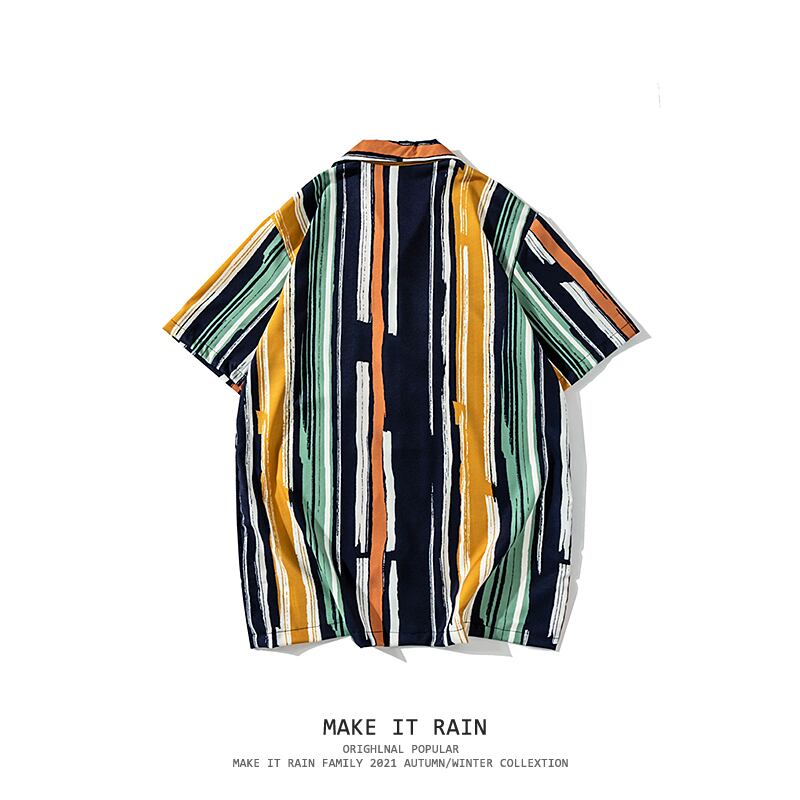 スタンダードスタイルストライプシャツ サマールーズカジュアルジャケット レトロ 夏物 MAKE_ITRAIN86903035207