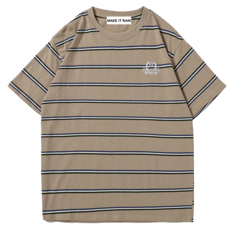 ストライプTシャツ シャツ レッド ストリート 刺繍 MAKE_ITRAIN552632156