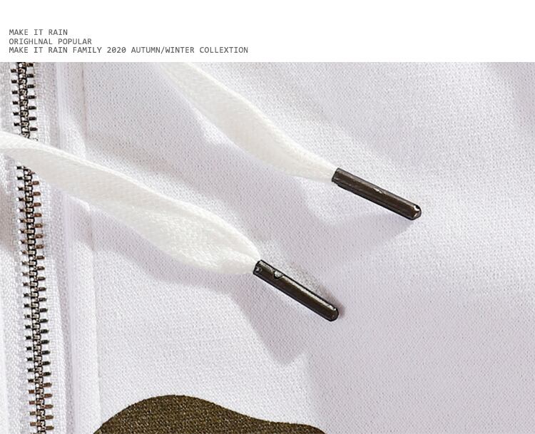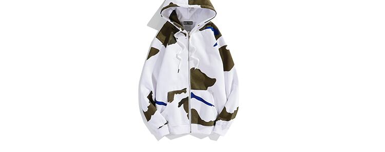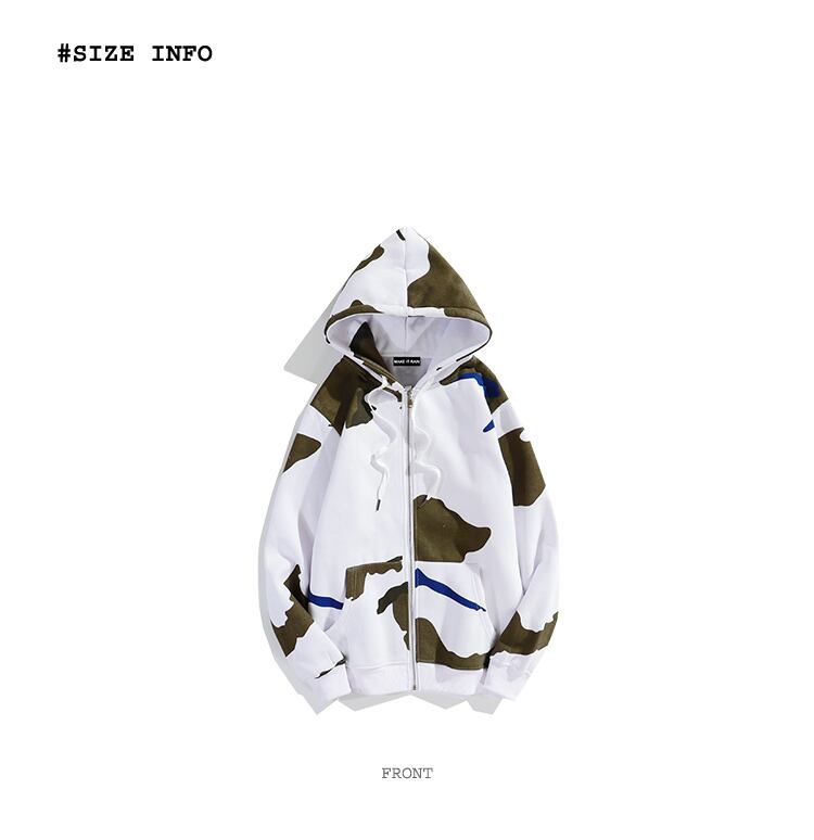 ホワイト迷彩柄ギャザーウィンターフードセーター ストリート 冬物 MAKE_ITRAIN70126702436