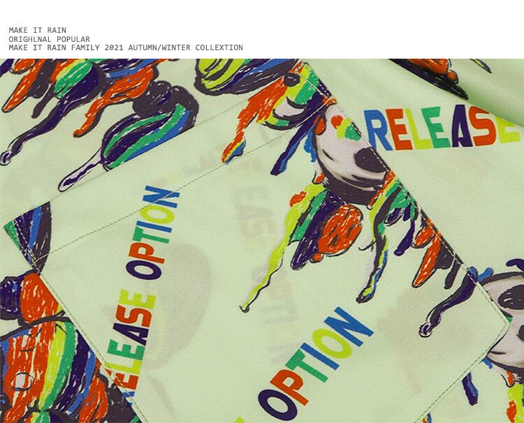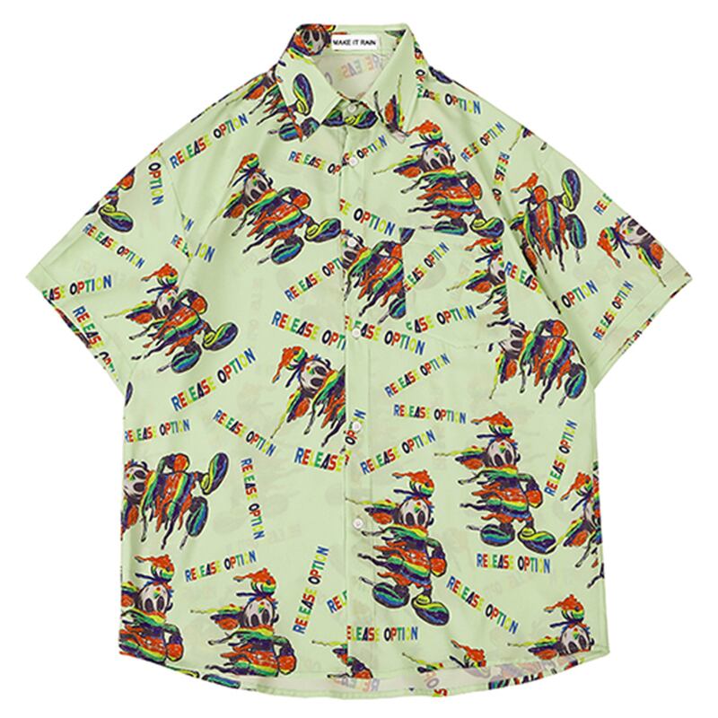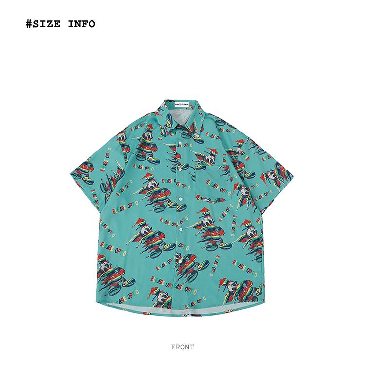 自然派プリント柄カジュアルシャツ ルーズレディースサマー 夏物 MAKE_ITRAIN83663341994