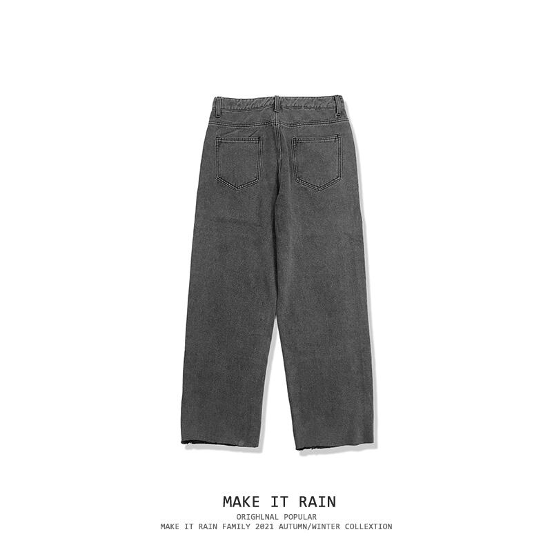 ハイウェストウェストパンツ スタンダードスタイルルーズジーンズ レトロ MAKE_ITRAIN32094562860