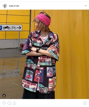 プリント柄シャツ ルーズスタイルスタンダード レトロ MAKE_ITRAIN86641025165