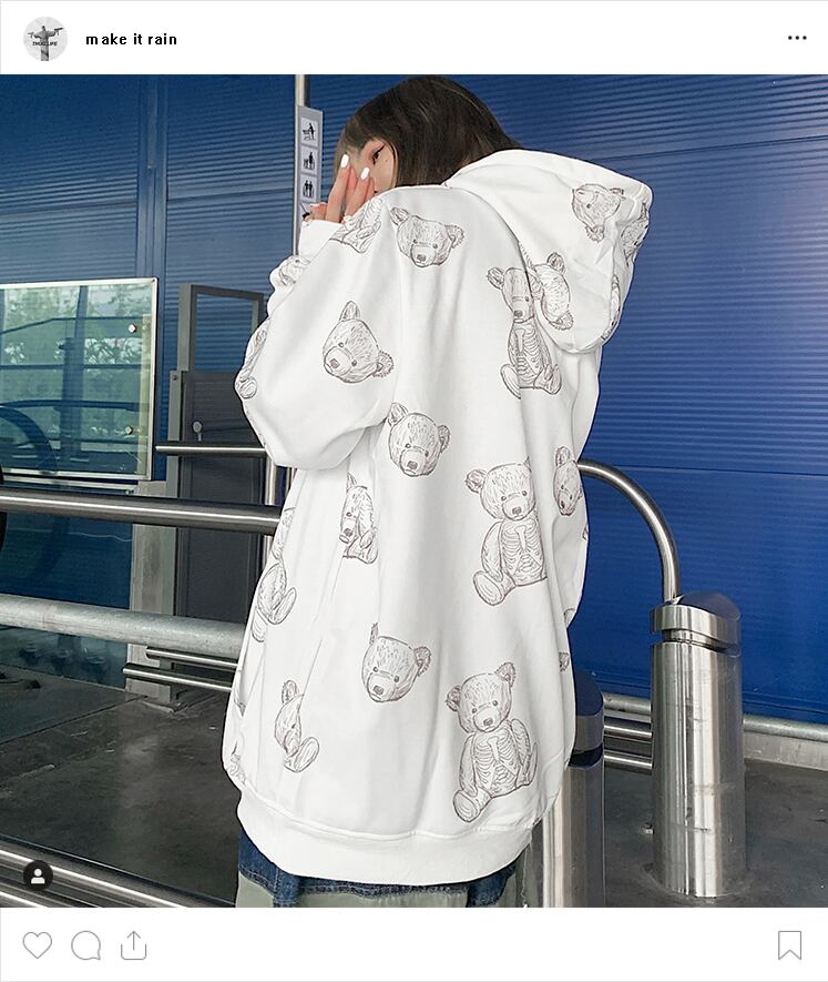 プリント柄オータムウィンターフードセーター スタイルルーズジャケット 大人ガーリー スウィート キュート カジュアル かわいい 秋物 冬物 MAKE_ITRAIN2207001698