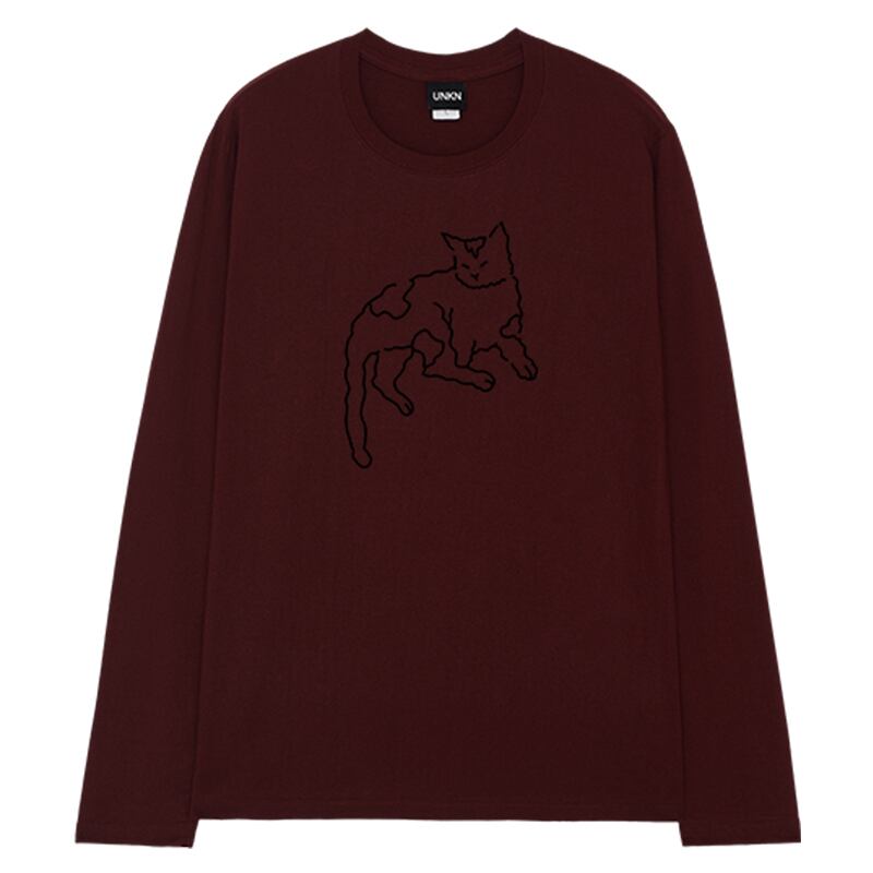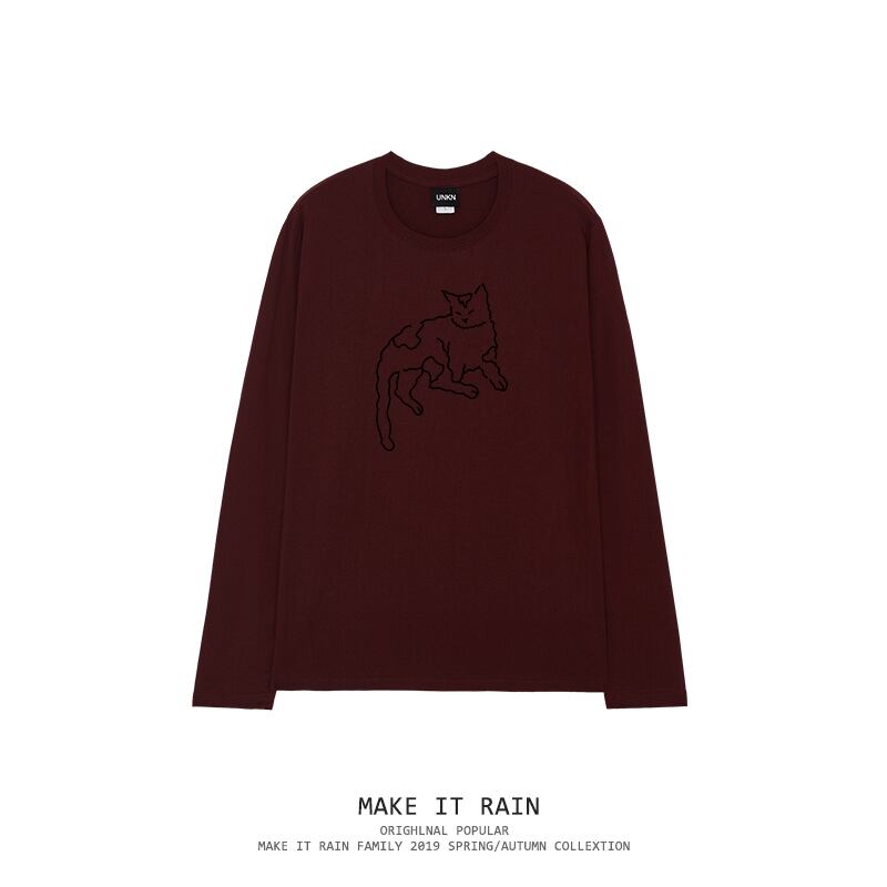 スタンダードラインプリントソリッド カラーTシャツ ルーズトップス ロング コットン レトロ ピュア ソリッドカラー MAKE_ITRAIN74011903574