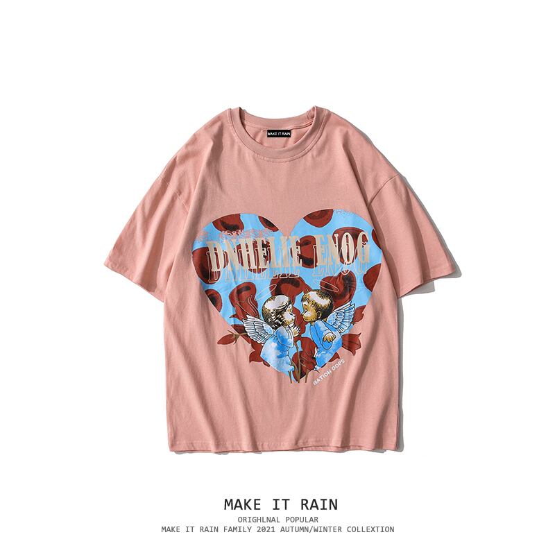 スタンダードトップス プリント柄半袖スリーブTシャツ ショート レトロ ハーフスリーブ ストリート MAKE_ITRAIN85519377314