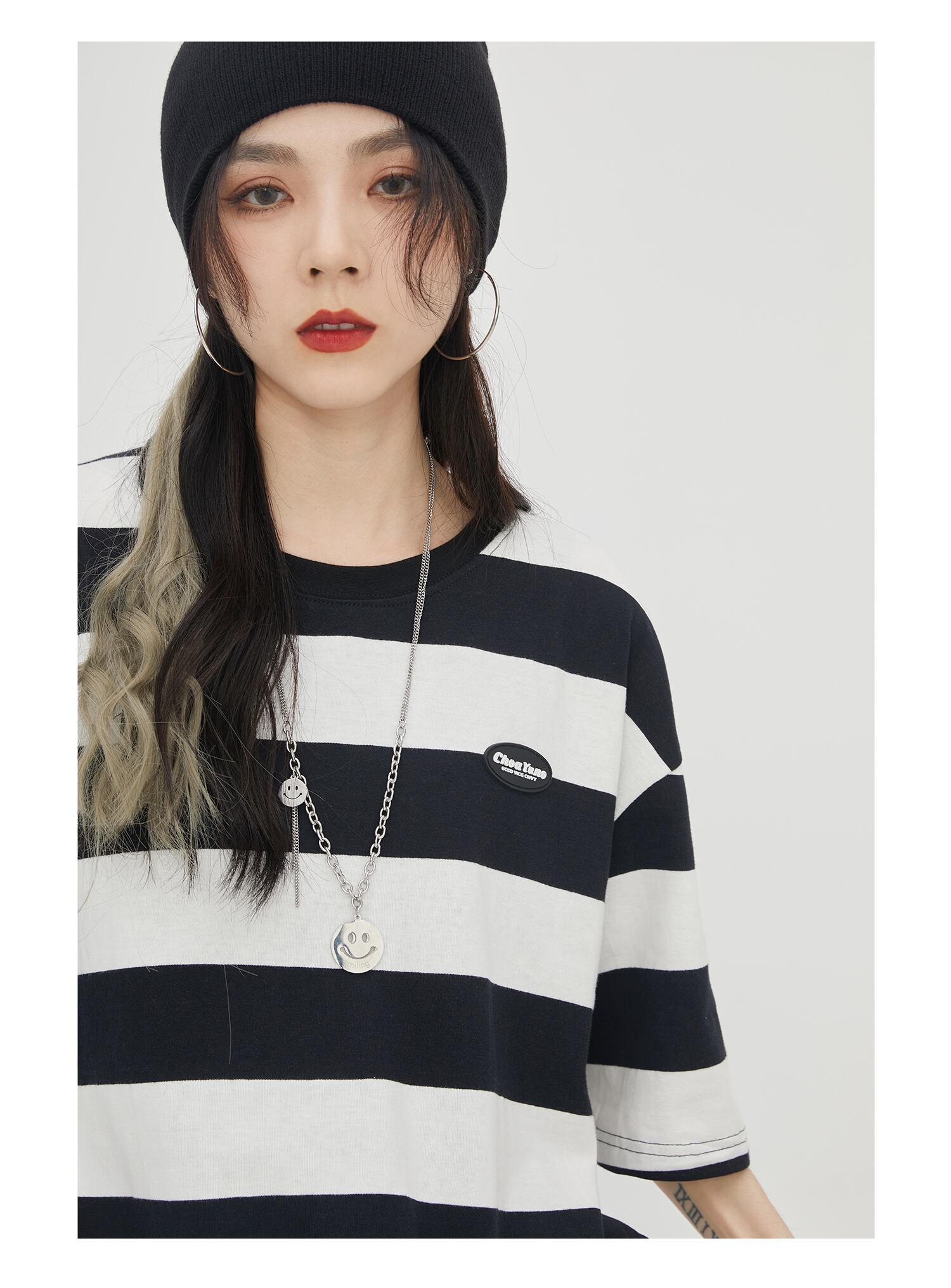 スタイルストライププリントレディーストップス スタンダードTシャツ レトロ MAKE_ITRAIN58521228668