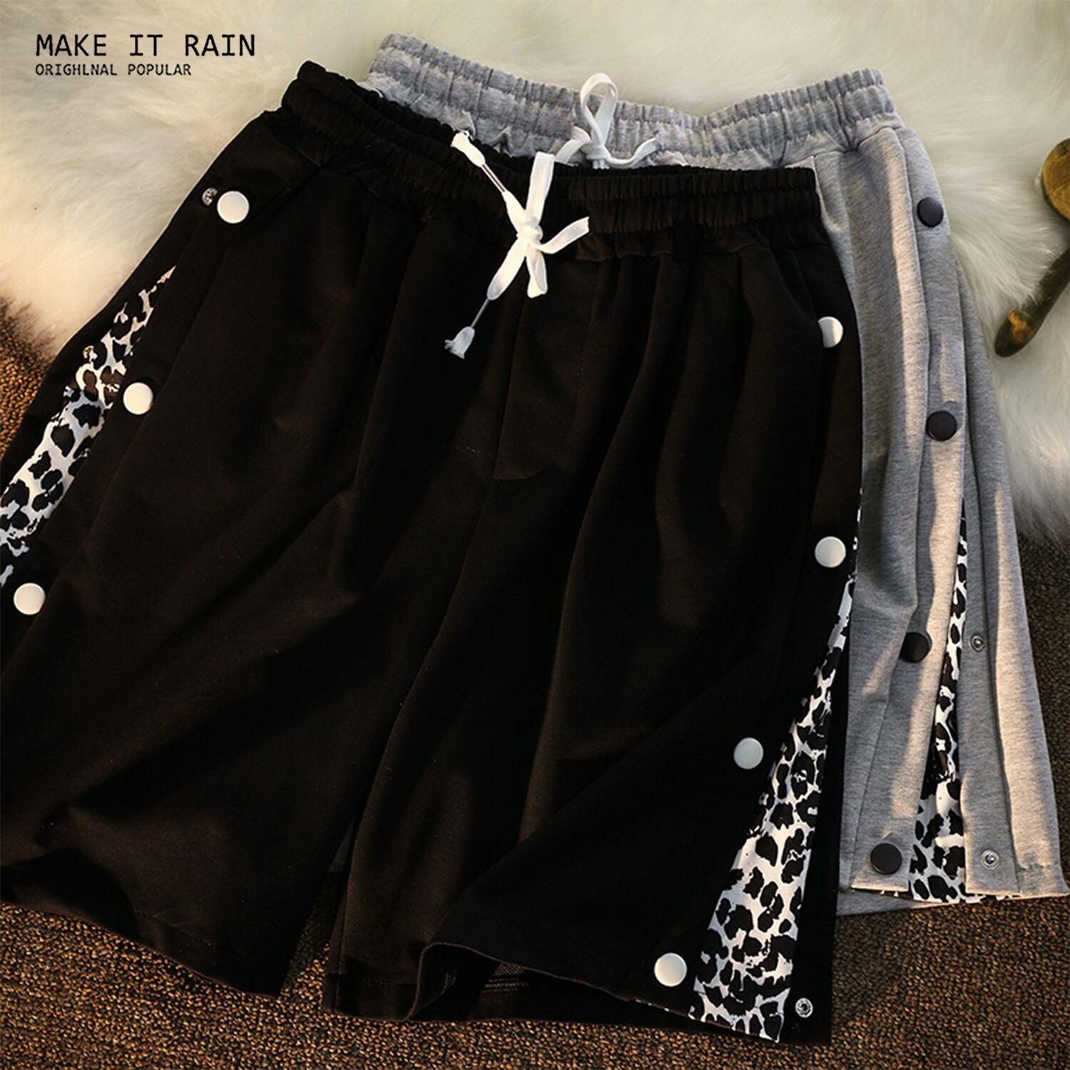 レッドサイドボタンカジュアルショーツ スタイルダークブラック迷彩柄ストライプパンツ ストリート ブルマー MAKE_ITRAIN84558730367