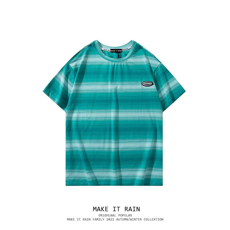 サマーストライプシャツ ルーズTシャツ スタンダード レトロ ストリート 夏物 MAKE_ITRAIN15893133977