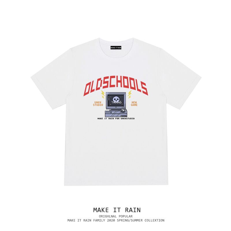 ホワイトプリントルーズラウンドネックカジュアルスタイルTシャツ サマー 夏物 Oネック MAKE_ITRAIN87490594764