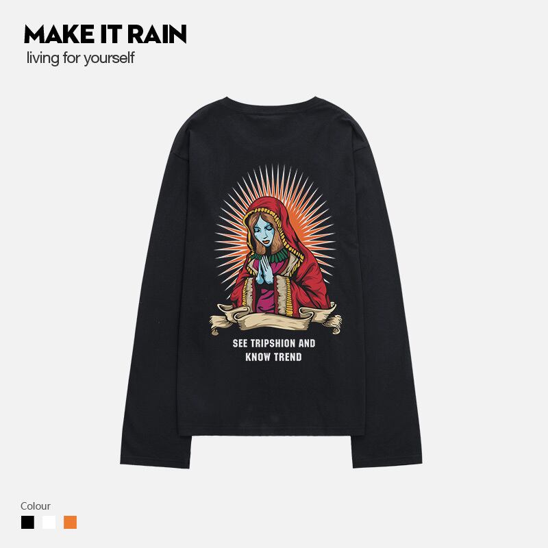オータムプリント柄Tシャツ シャツ レディース ロング 秋物 ヨーロピアン MAKE_ITRAIN89401941829