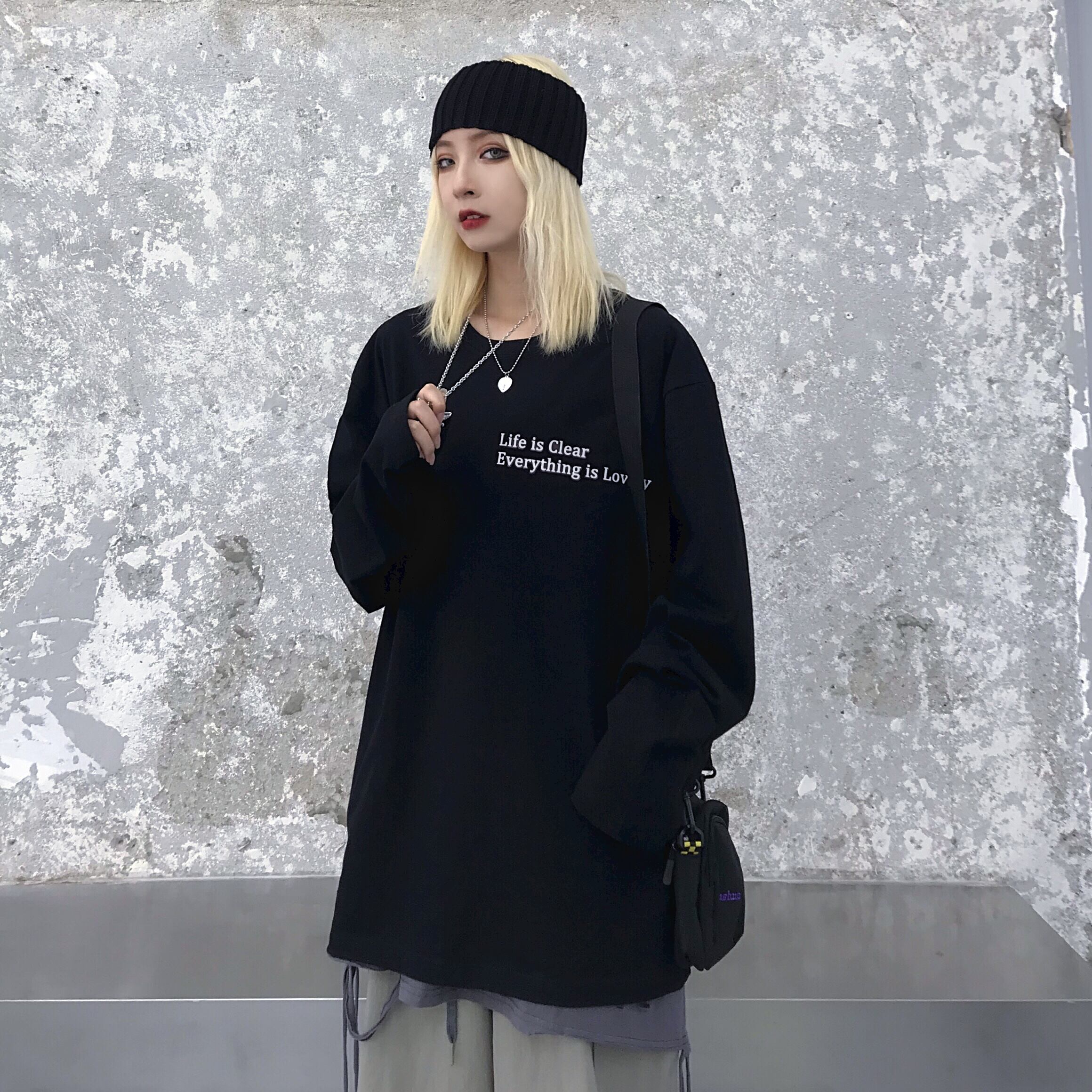 スタンダードプリントTシャツ シャツ レディースルーズオータムウィンター ロング レトロ 秋物 冬物 MAKE_ITRAIN80388814511