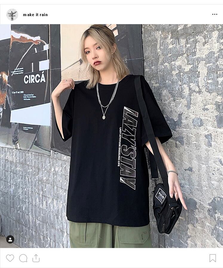 サマーラウンドネックスリーブTシャツ ルーズプリント 夏物 Oネック ヨーロピアン MAKE_ITRAIN17923048022