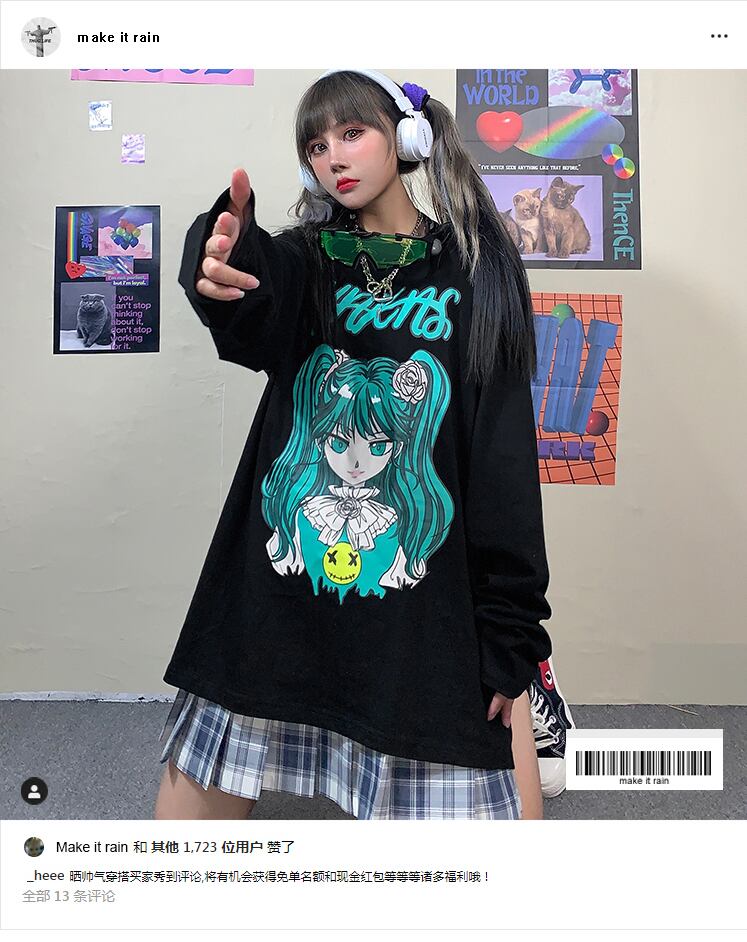 ダークTシャツ スタイルトップス ロング ストリート かわいい MAKE_ITRAIN5515010280