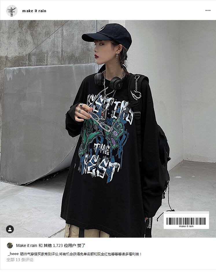 プリントTシャツ シャツ ルーズ ロング ストリート 大きめサイズ かわいい MAKE_ITRAIN84255779547