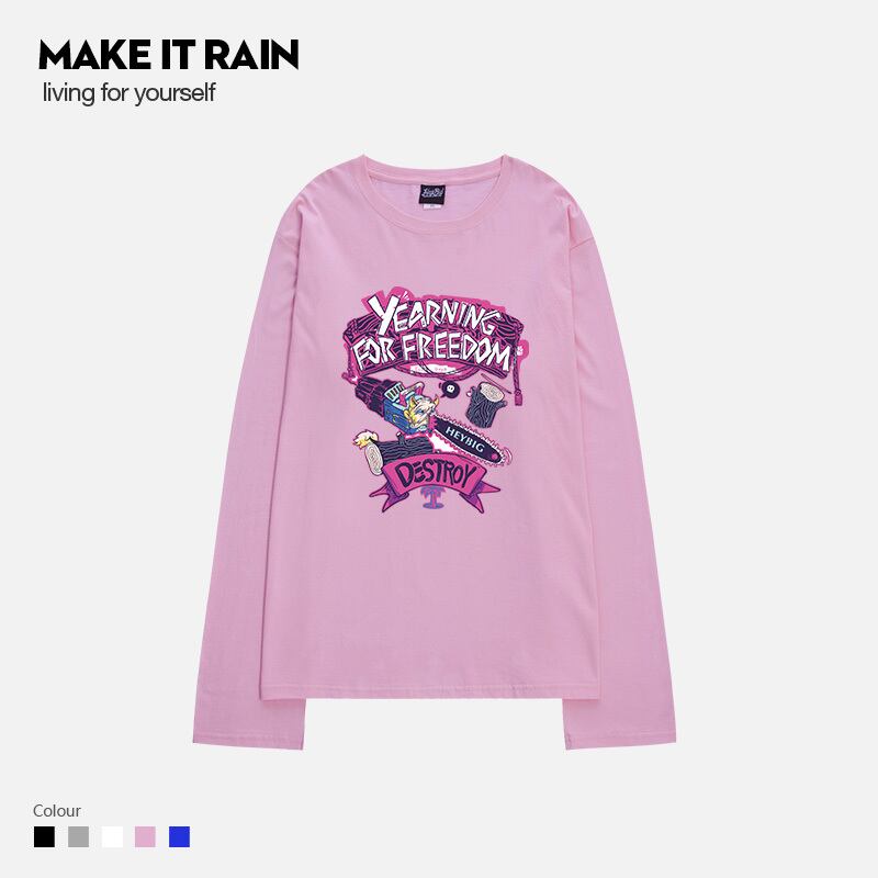 スタンダードレディースルーズラウンドネックTシャツ 自然派 ロング レトロ ストリート Oネック ヨーロピアン MAKE_ITRAIN67528390376