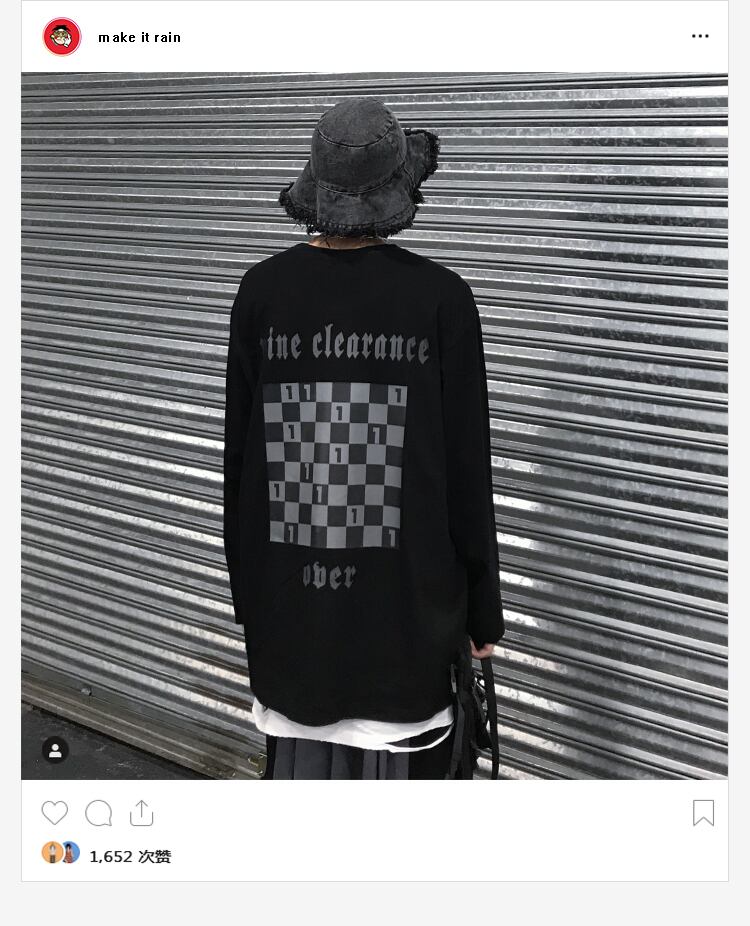スタンダードプリントダークTシャツ シャツ レディースルーズ ロング レトロ ストリート かわいい MAKE_ITRAIN17361313805