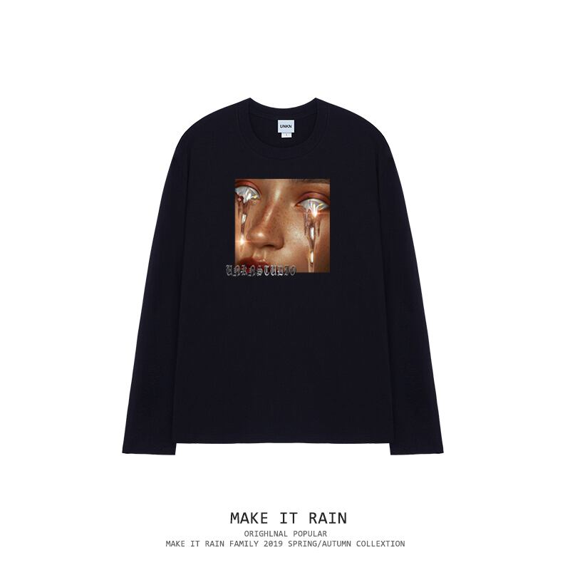 スタンダードTシャツ ラウンドネック ロング レトロ ストリート かわいい Oネック MAKE_ITRAIN17953556316