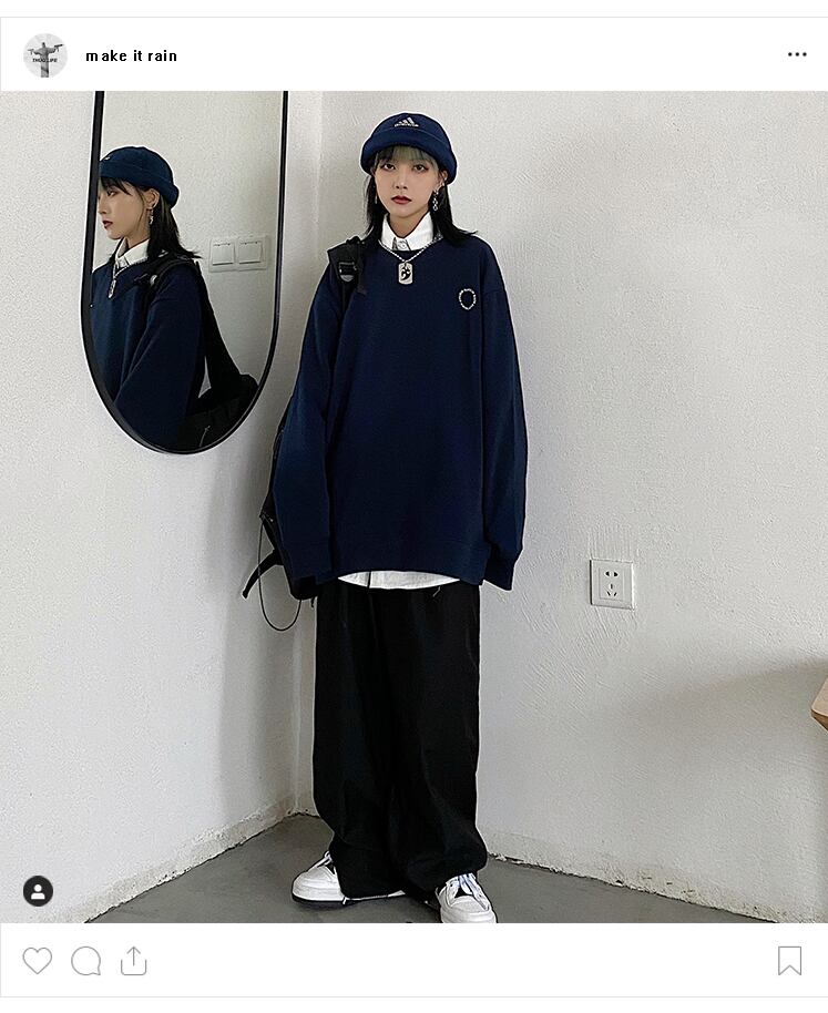 ルーズトップス プリントベルベットセーター ストリート かわいい MAKE_ITRAIN40844499634