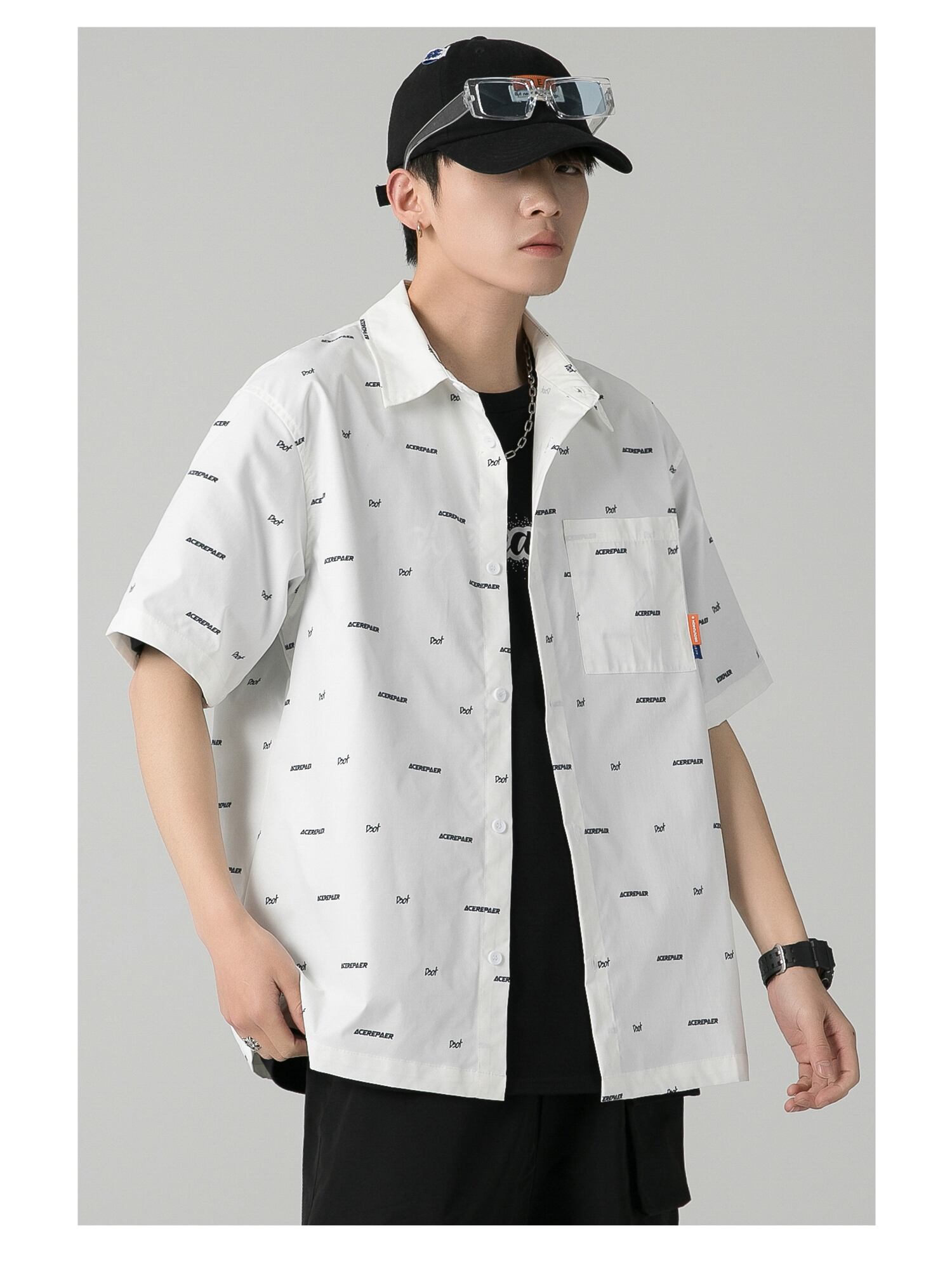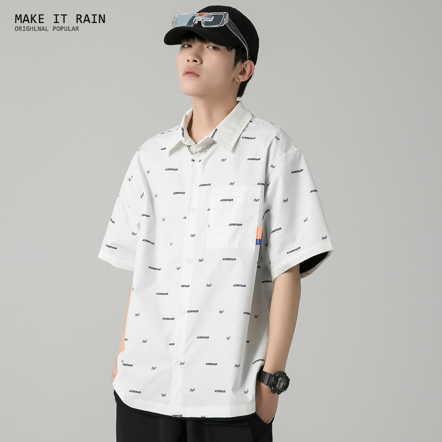 サマーカジュアルシャツ プリントルーズ 夏物 MAKE_ITRAIN86238538706