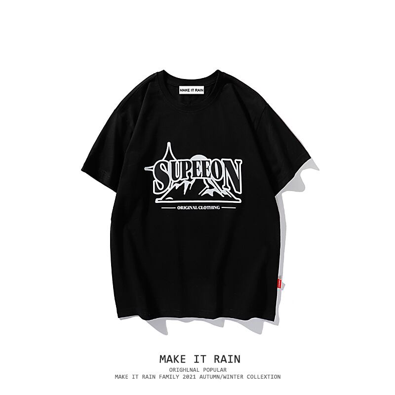カジュアルプリントトップス ダークスタイルサマースタンダードTシャツ レトロ 夏物 MAKE_ITRAIN24514116735