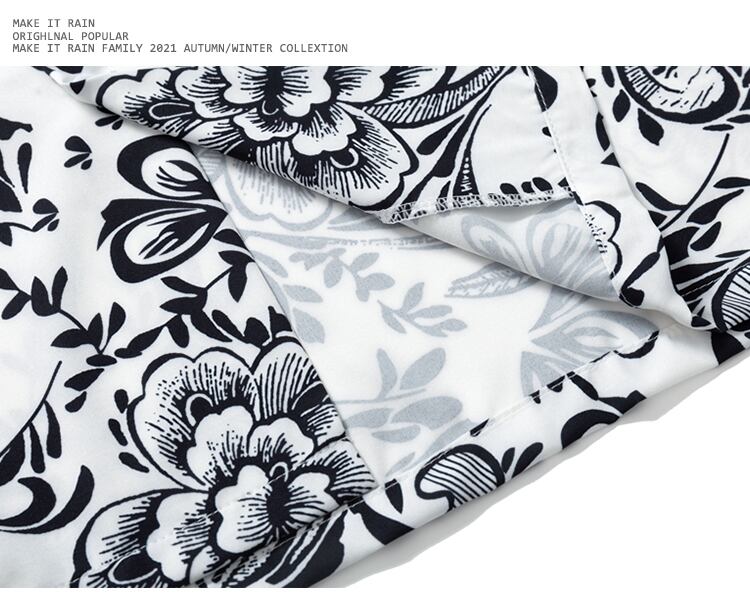 ダークFlowerデザイン プリント柄シャツ サマー ストリート 夏物 フラワーデザイン MAKE_ITRAIN403192953