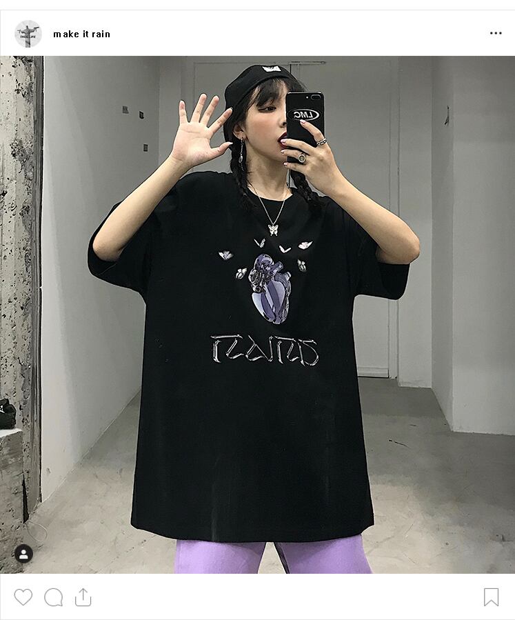 ダークTシャツ ハートButterflyデザイン レディースカジュアルラウンドネック Oネック MAKE_ITRAIN80871793074