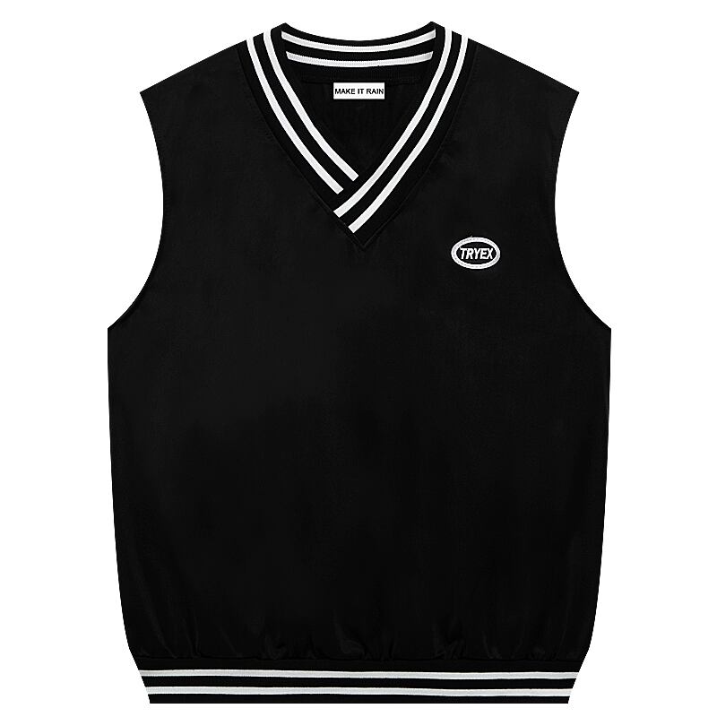 ストライプVネック刺繍サマーカジュアルノースリーブ 夏物 MAKE_ITRAIN54573018491