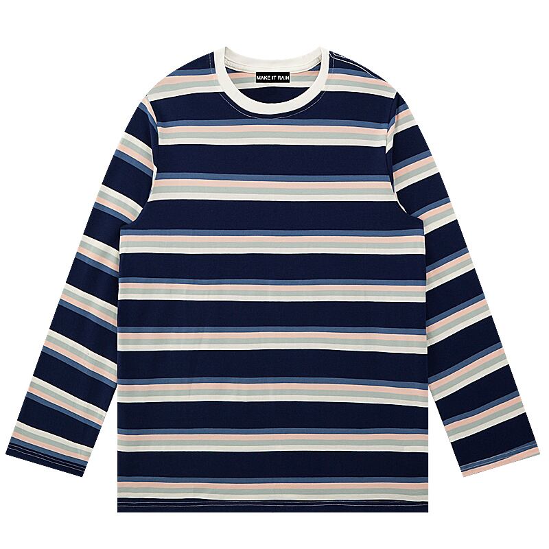 オータムスタンダードベーシックストライプTシャツ シャツ ルーズ薄手レディース ロング レトロ 秋物 MAKE_ITRAIN39268885951