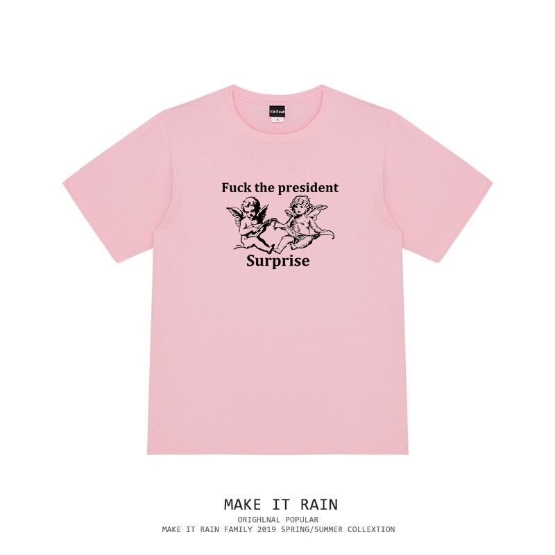 スタンダードプリントTシャツ ラウンドネックレディースルーズ コットン レトロ Oネック MAKE_ITRAIN1922691605