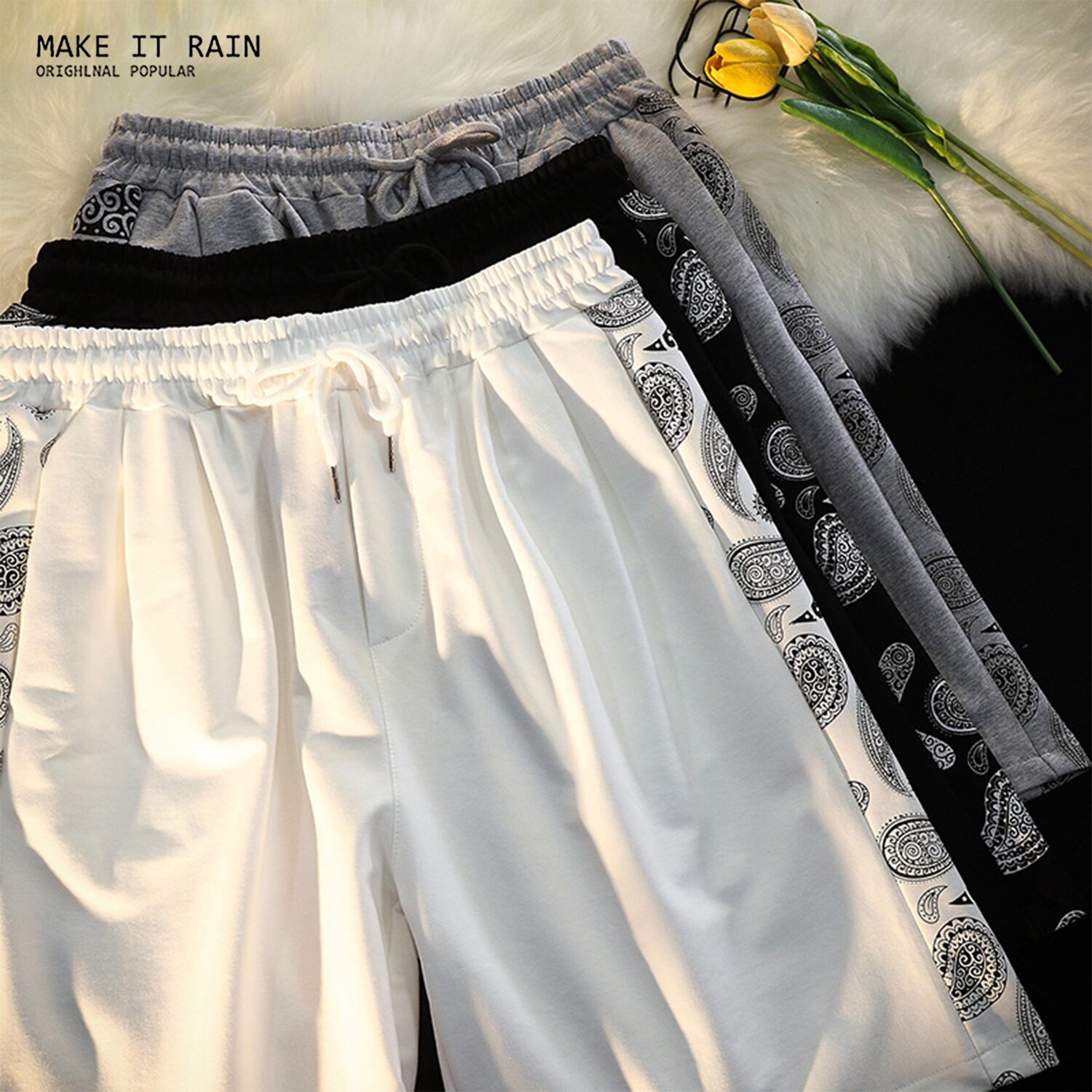 スタイルレディースサイドプリント柄カジュアルパンツ スタンダードルーズショーツ レトロ ストリート ブルマー MAKE_ITRAIN32842327504