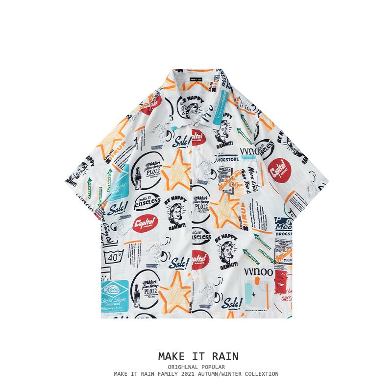 スタンダードスタイルプリント柄シャツ レディース レトロ ヨーロピアン MAKE_ITRAIN92258656961